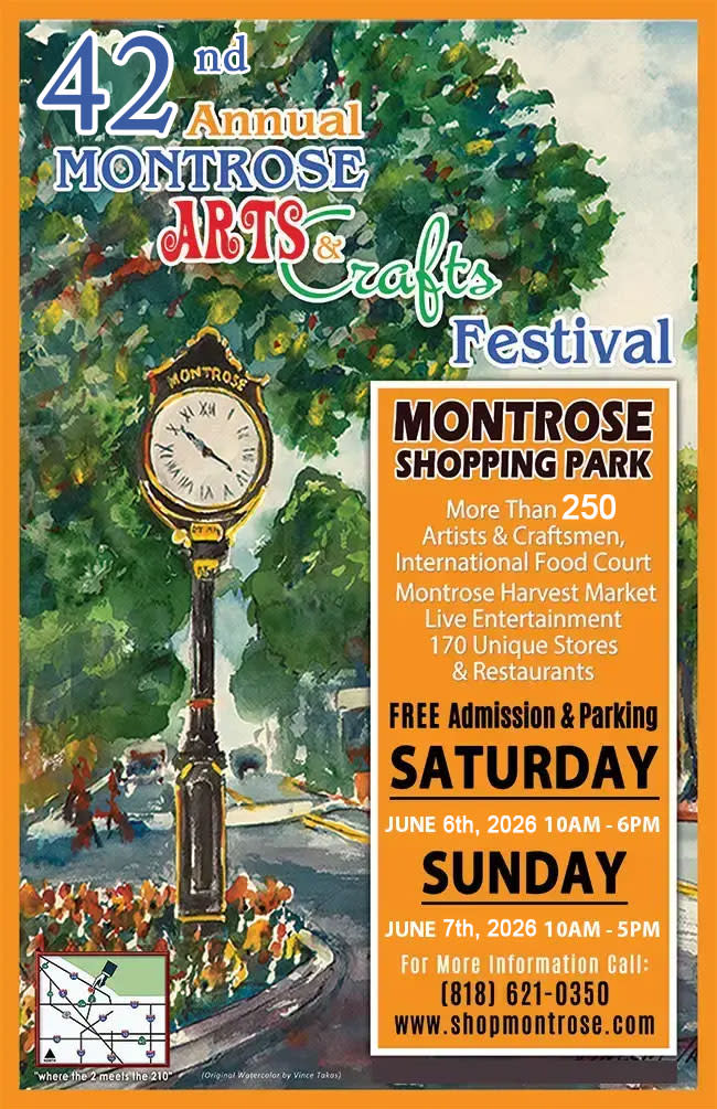 More than 270 fine artists, crafters, food vendors, California Certified farmers, musicians and entertainers will make their way to Montrose on festival weekend. The Festival weekend is a great time to re-discover and explore the nearly 170 businesses that comprise the historic, century-old Montrose Shopping Park. Come spend festival weekend in charming old town Montrose and enjoy the family fun and tradition of the Montrose Arts & Crafts Festival.Images